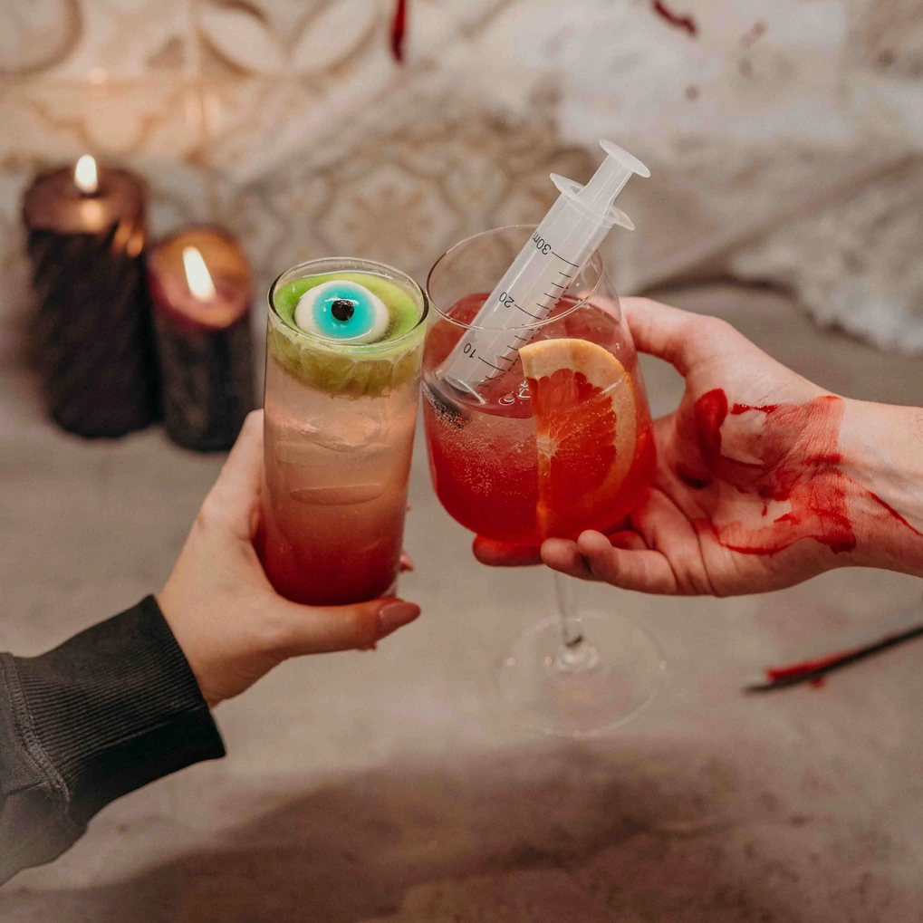 A Bitter Injection Spritz a halloweeni megtestesítője a jól ismert Aperol Spritz-nek. Ez a koktél már-már visszataszító ha valaki a vértől és az injekcióktól írtózik, viszont ha egyszer belekóstolsz már kéred is a következő adagot belőle. Keserű narancsos a Camparitól, amihez szuperül passzol a grapefruit szóda. Ezt a párost a grenadine szirup és a prosecco édesíti meg, így tökéletes harmóniát alkotva.